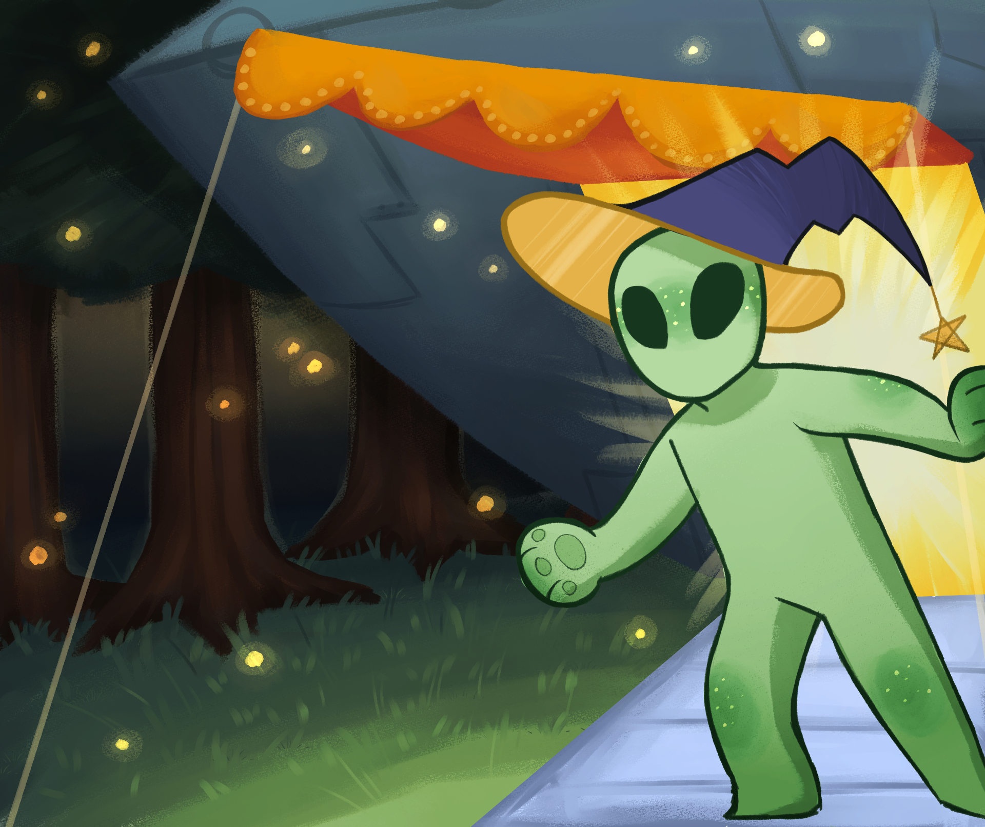 Learn MoreAylias is a young Martian that lives deep in the woods. He spends his days making and selling trinkets from the back of his UFO.