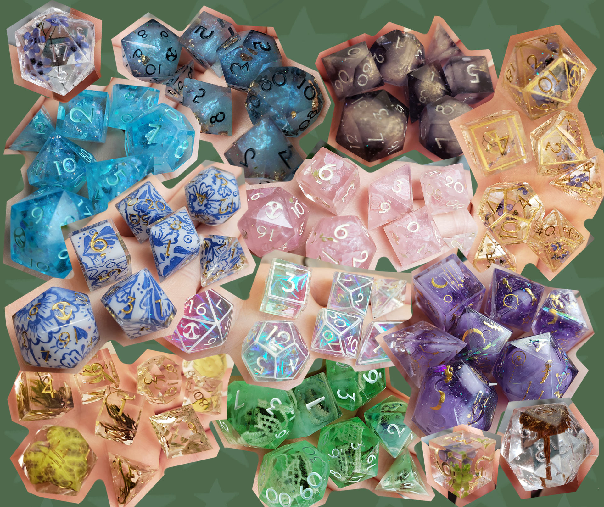 Forest Floor (REAL PLANTS!) Dice Set For Dungeons And Dragons Tabletop RPG Games