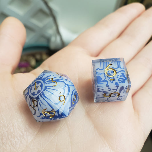 Porcelain Blue (Handpainted) Dice Set For Dungeons And Dragons Tabletop RPG Games